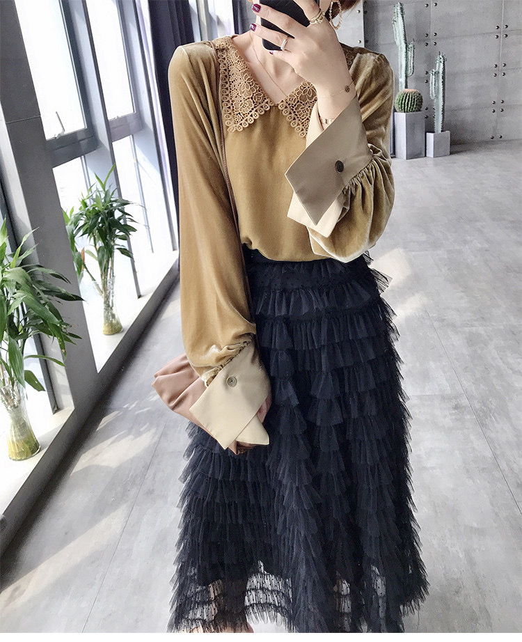 灯笼袖,拼接过量叠加的袖口克夫设计。